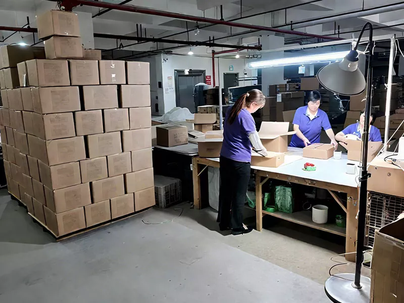 Чтобы облегчить упаковку и доставку, мы создали наш собственный упаковочный центр возле нашей штаб -квартиры в Дунгуане. Этот центр специализируется на упаковочных решениях для хрупких предметов, таких как стеклянные свечи и диффузоры. Мы можем создавать пользовательские коробки и накладки, и мы используем экологически чистые материалы для защиты таких предметов, как стеклянные диффузоры и декоративная керамика, обеспечивая их безопасность во время транспортировки.
