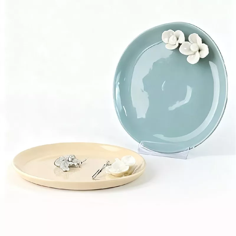 Минималистская керамическая посуда для ювелирных изделий Insta предлагает на выбор множество цветов и цветочных дизайнов.